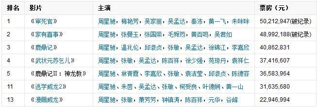 其中,1992年,香港十五大卖座影片中周星驰占了七个,前五名被周星驰包圆。