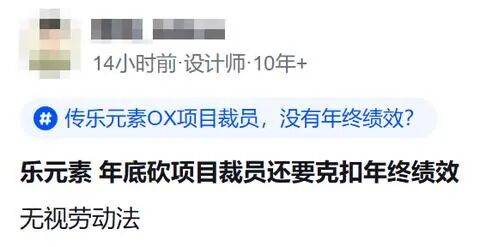 最近,有乐元素员工在脉脉上实名称,公司名为OX的项目被砍、裁员,且被裁员工没有年终绩效。根据他的说法,OX项目隶属于乐元素旗下、位于上海的白银工作室,是一款UE5二游。该话题很快冲上了脉脉话题排行榜。
