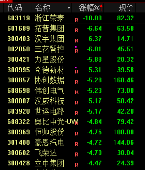下跌方面,机器人概念股调整,浙江荣泰跌停。