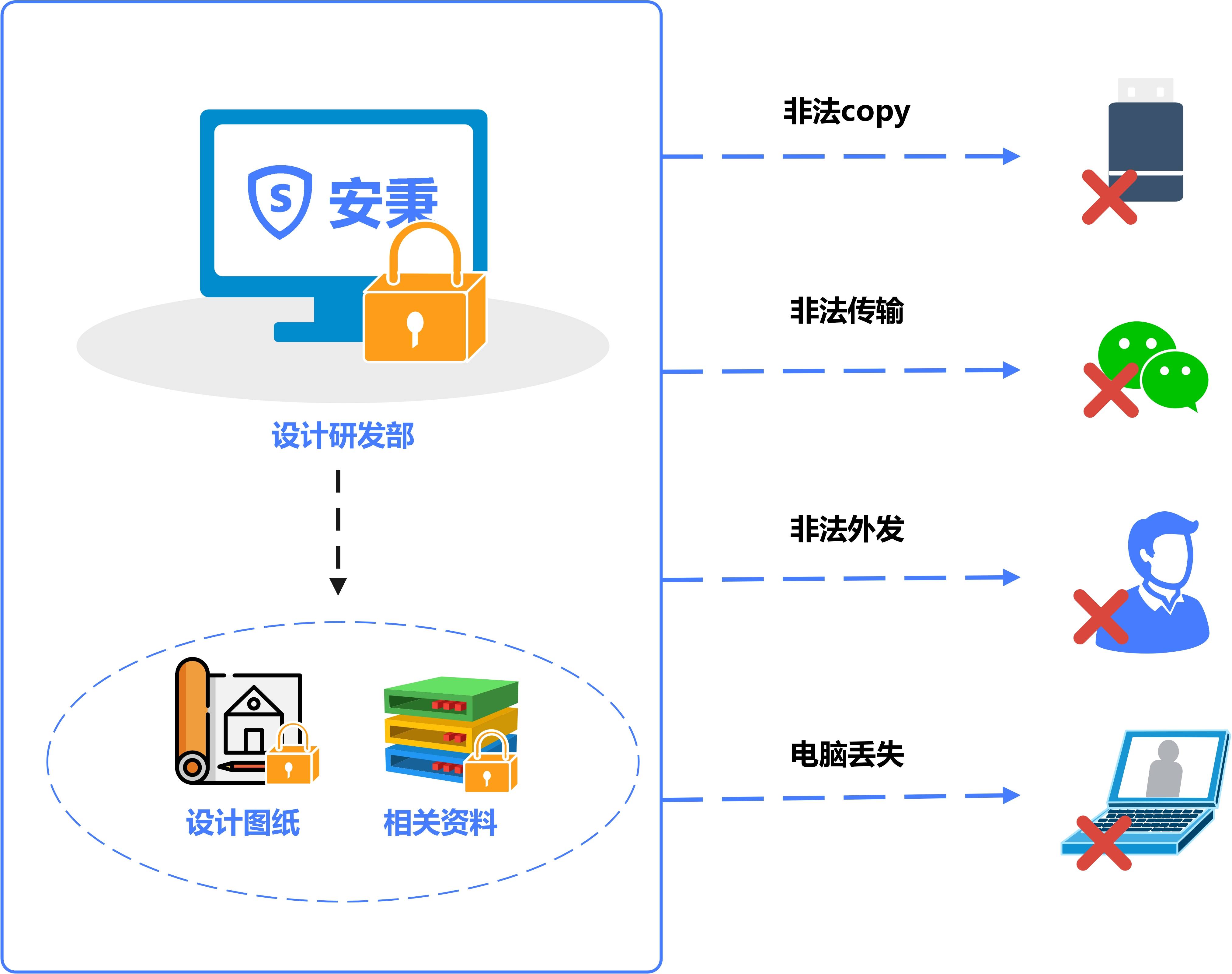 通过使用256位加密算法和动态引擎,我们的系统能够自动或强制对企业文档、图纸等核心数据进行加密。即使在内部正常使用中,一旦这些数据外发,也会立即变为乱码,从源头上有效阻止了数据泄露的可能性。
