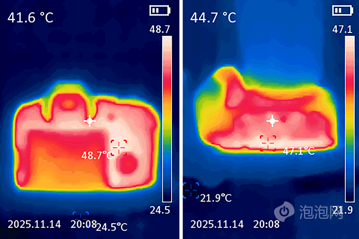 过热关机后相机背部与底部温度情况