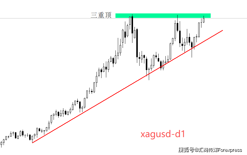 技术角度看,日线级别,国际黄金仍处于长周期上涨趋势之中,目前的震荡走势结束后,白银还将顺势走强。但是,白银会否在当前的上涨波段结束震荡仍存疑。有一种可能,白银在触及55美元整数阻力位后,将掉头下跌,形成经典的三重顶结构。一旦该结构形成,白银有效突破历史最高点区域的难度将大大增加。