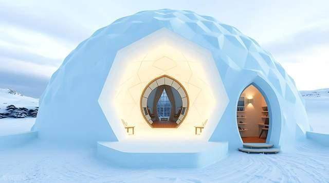 霍比特雪屋的圆窗是天然取景框。让人物坐在窗内,镜头从室外对准窗口拍摄。调整位置直到窗框正好圈住远处的雪山,室内打盏小夜灯制造暖光。
