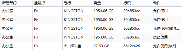 查看客户端使用U盘的记录,记录U盘的所属部门、挂载点、卷标、容量等信息