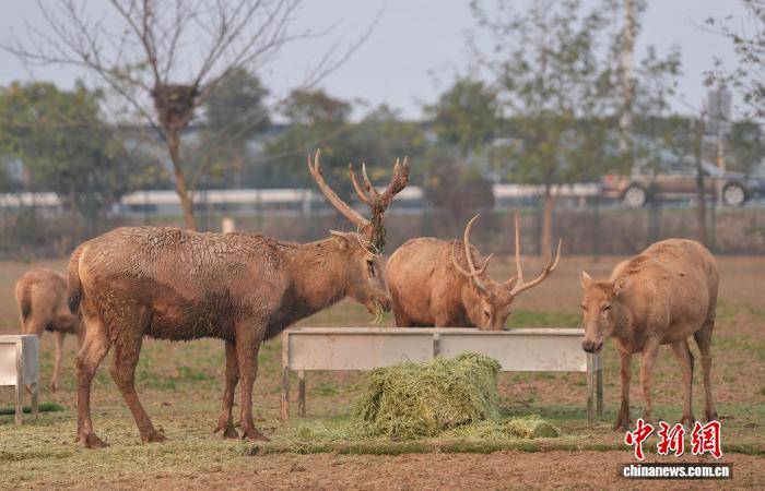 图为被救助的麋鹿在苑内进食。中新社记者 杨华峰 摄