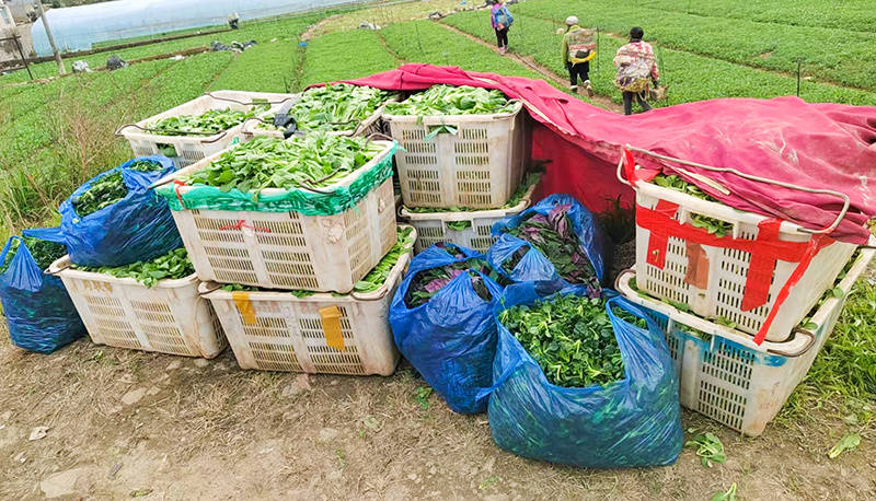 村民采收新鲜蔬菜。