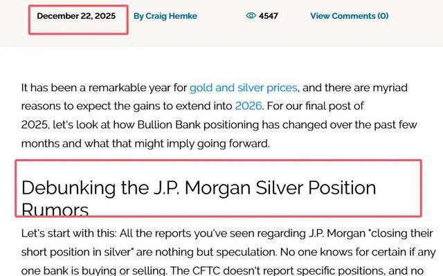 而从过去一个月的媒体报道和社交平台信息看,类似摩根大通“平仓白银空头头寸”的说法,其实早在12月初就有了——一直到上周也依然有坊间的信奉者。