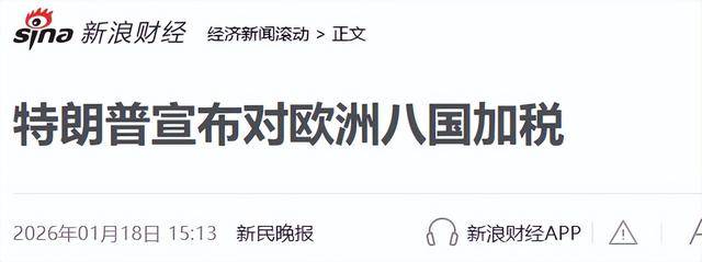 就在1月17日,特朗普突然宣布对丹麦、挪威等8个欧洲国家加征10%关税,后续还将升至25%,理由竟是逼迫这些国家同意美国“购买格陵兰岛”的无理要求。