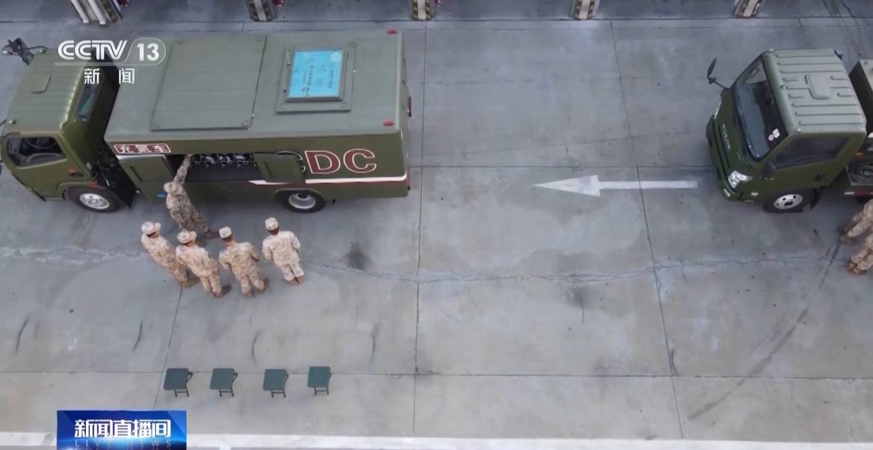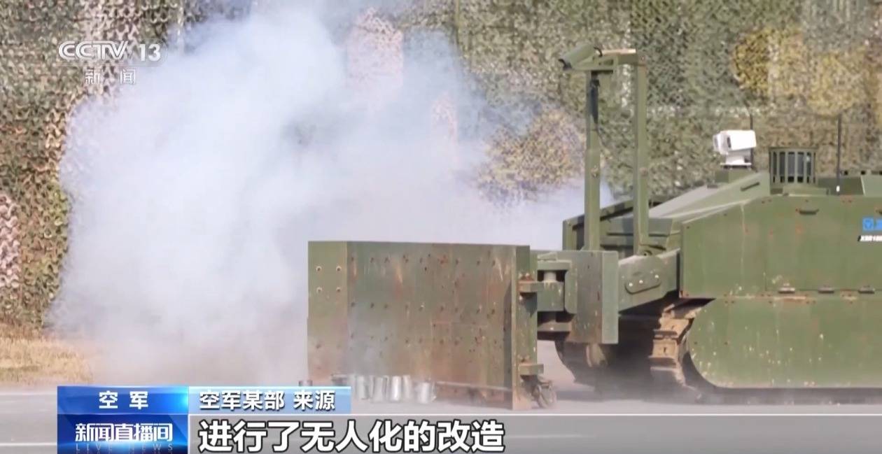 演练模拟某场站遭“敌”袭击,造成人员伤亡和设施毁伤。官兵迅速展开毁伤勘察作业,根据无人机回传画面实时评估机场毁伤态势。随后,无人推扫车、无人机等新型设备快速出动,对地面及地下存留的未爆弹进行排除。