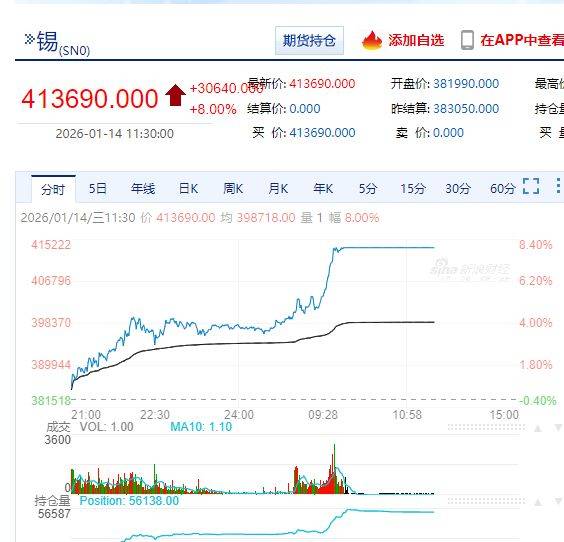 与此同时,有色金属也表现强势。伦敦金属交易所(LME)期锡价格也突破51000美元,再创历史新高。上期所沪锡期货主力合约触及涨停,涨幅8%。