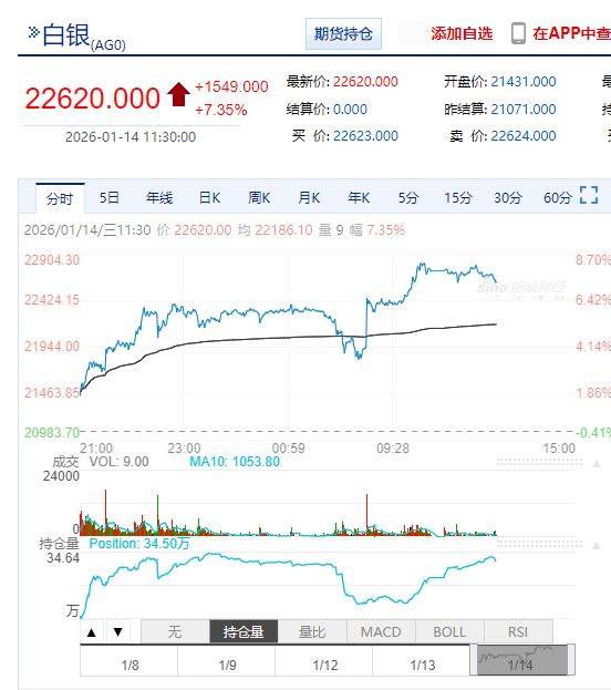 沪银涨超7%。