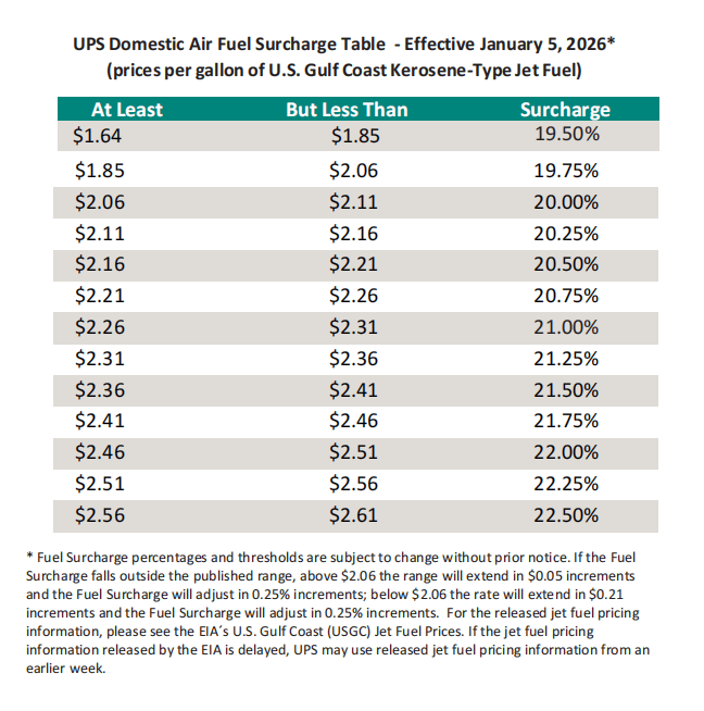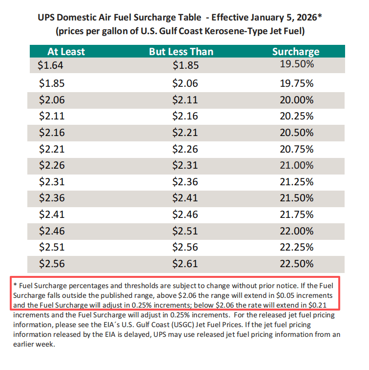 就在大家还在核算2025年Q4旺季成本时,UPS已经悄然发布了2026年1月5日生效的最新燃油附加费(Fuel Surcharge)调整方案。对于做美国本土快递业务的我们来说,燃油费往往是账单上最容易被忽视,但却最“痛”的一刀。