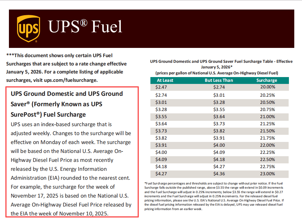 2026年UPS燃油附加费新政详解:美国尾程派送成本的“隐形刺客”又升级了?