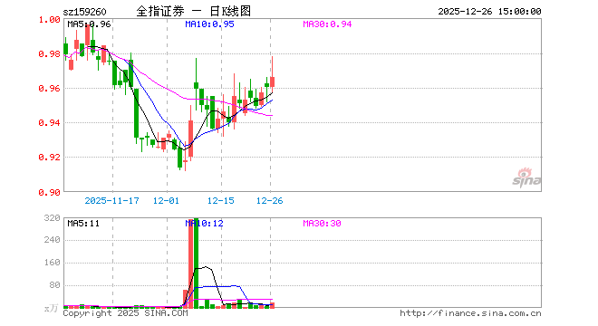 证券指数ETF(159260)业绩比较基准为中证全指证券公司指数收益率,管理人为博时基金管理有限公司,基金经理为赵云阳,成立(2025-10-24)以来回报为-3.28%,近一个月回报为4.52%。