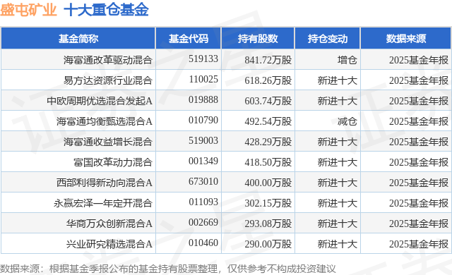 根据2025基金年报公募基金重仓股数据,重仓该股的公募基金共84家,其中持有数量最多的公募基金为海富通基金的海富通改革驱动混合。海富通改革驱动混合目前规模为37.55亿元,最新净值2.8895(1月23日),较上一交易日下跌1.2%,近一年上涨64.28%。该公募基金现任基金经理为周雪军。周雪军在任的基金产品包括:海富通收益增长混合,管理时间为2015年6月9日至今,期间收益率为157.61%;海富通均衡甄选混合A,管理时间为2021年1月26日至今,期间收益率为38.02%;海富通远见回报混合A,管理时间为2025年3月4日至今,期间收益率为68.02%。