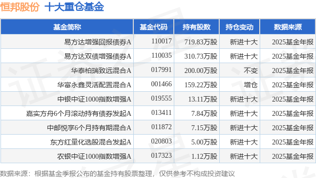 重仓恒邦股份的公募基金请见下表: