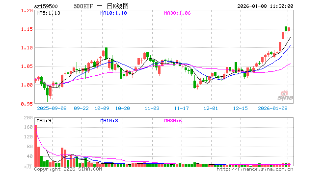 1月8日,截止午间收盘,500ETF(159500)涨0.70%,报1.152元,成交额1176.54万元。500ETF(159500)重仓股方面,胜宏科技截止午盘跌2.58%,华工科技跌0.01%,润和软件涨1.56%,指南针跌3.49%,芯原股份涨4.41%,四川长虹涨0.75%,巨人网络涨0.68%,东吴证券跌1.91%,菲利华跌3.01%,天风证券跌0.93%。