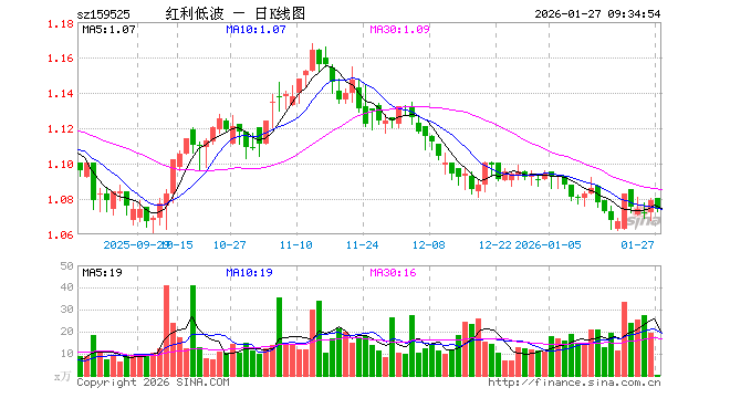 1月27日,红利低波ETF(159525)开盘涨0.09%,报1.080元。红利低波ETF(159525)重仓股方面,上海银行开盘涨0.11%,南京银行涨0.00%,平安银行涨0.00%,沪农商行涨0.00%,江中药业涨1.22%,陕鼓动力跌0.91%,民生银行涨0.00%,格力电器涨0.08%,中粮糖业跌0.47%,三维化学跌0.42%。