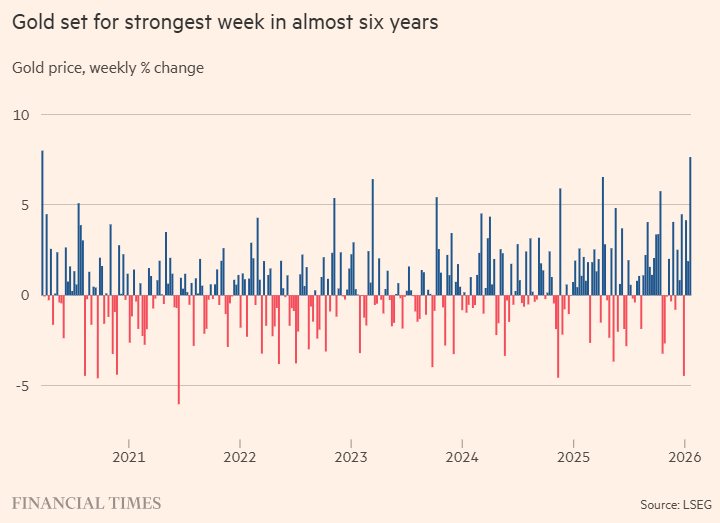 本周黄金累计涨幅超过8%,势创2008年来最佳单周表现。