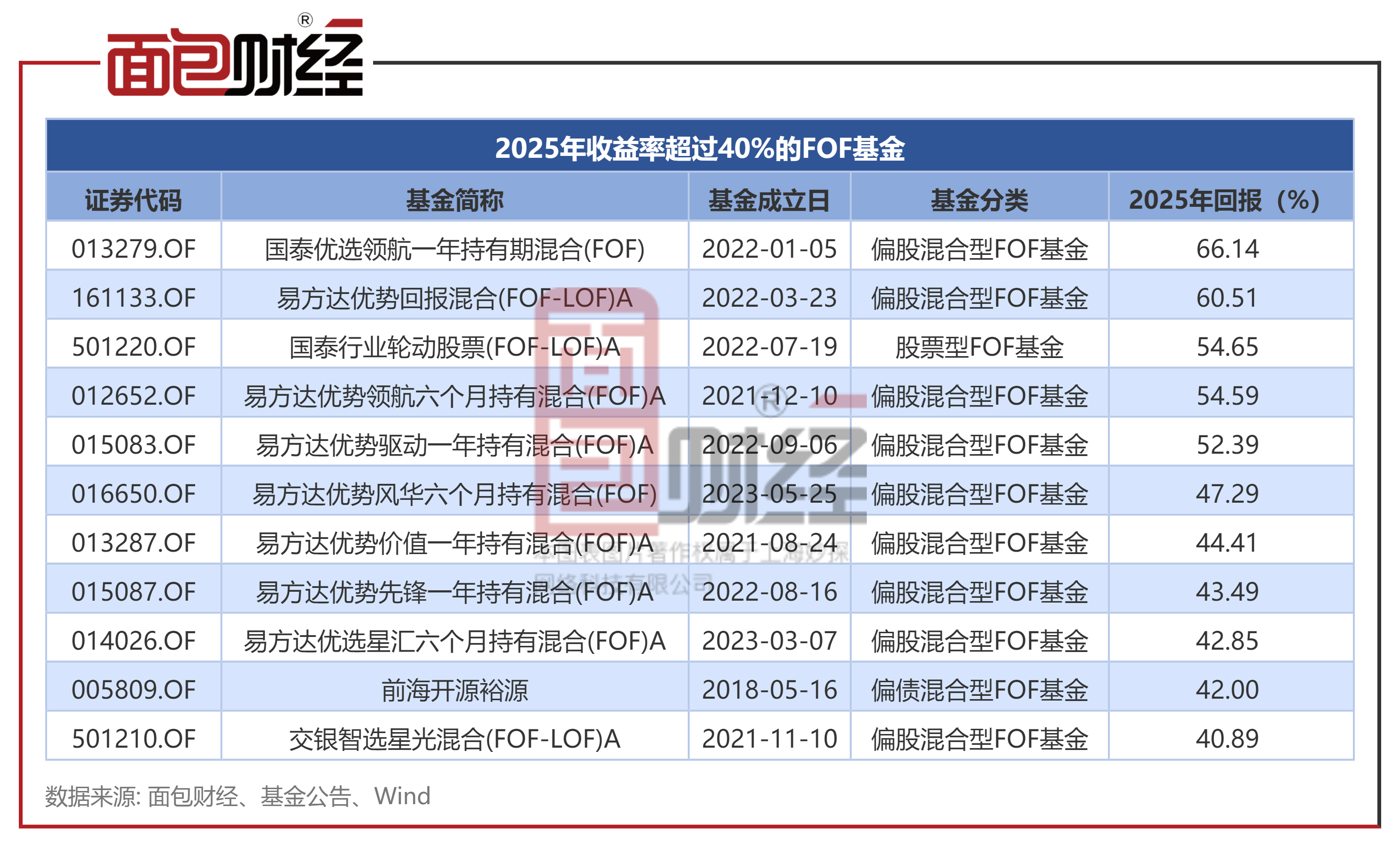 FOF基金2025年平均收益率14.9%,易方达基金、国泰基金业绩领跑