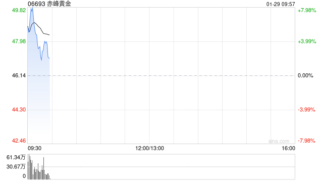 黄金股早盘全线高开,截至发稿,赤峰黄金(06693)上涨4.81%,报48.36港元;山东黄金(01787)上涨3.71%,报53.10港元;招金矿业(01818)上涨0.59%,报41港元;紫金黄金国际(02259)上涨2.29%,报259港元。