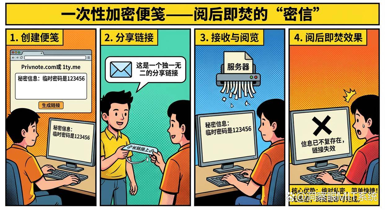 在某些场景下,我们追求的不是长期安全存储,而是信息的“一次性”安全传递。比如分享一个临时的账号密码、API密钥或一句敏感的话。这时,“阅后即焚”的加密便笺服务就是最佳选择。