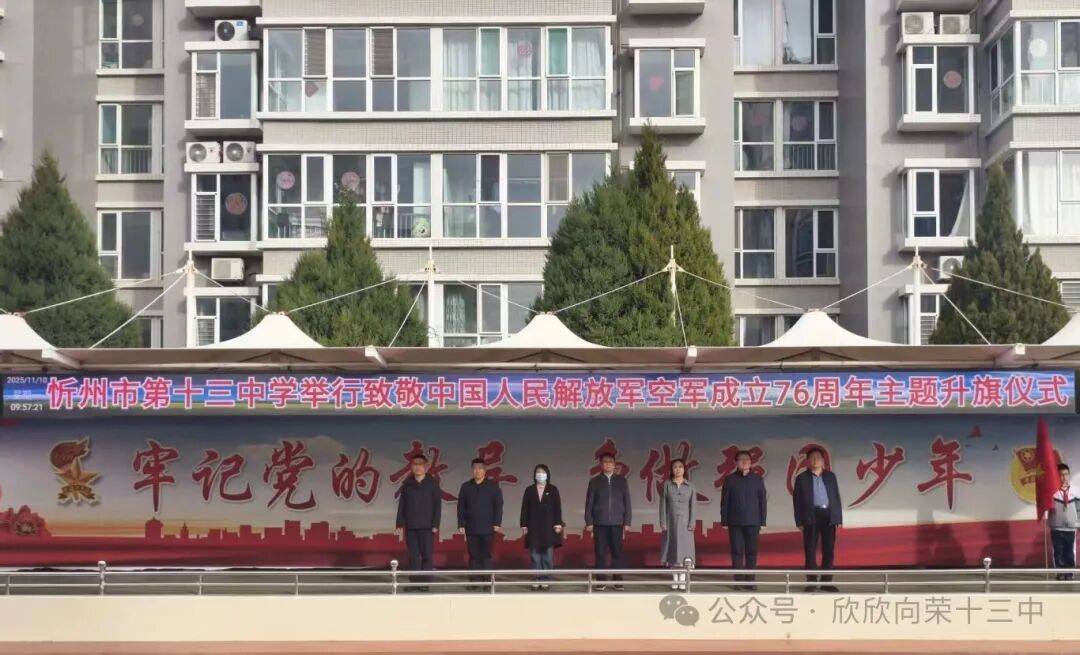 忻州市第十三中学举行致敬中国人民解放军空军成立76周年主题升旗仪式