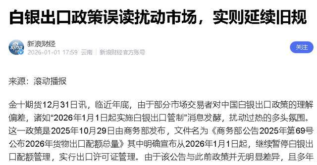1、2026-01-01 新浪财经 白银出口政策误读扰动市场,实则延续旧规
