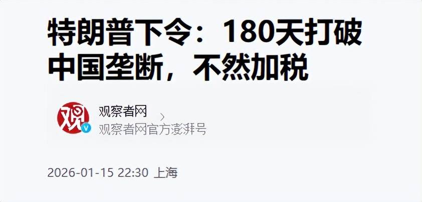 2026年1月14日,他签了个总统公告,满世界吆喝:“各国听好了,180天内必须跟美国签协议,把关键矿产供应链从中国手里拽出来!不配合就加税!”
