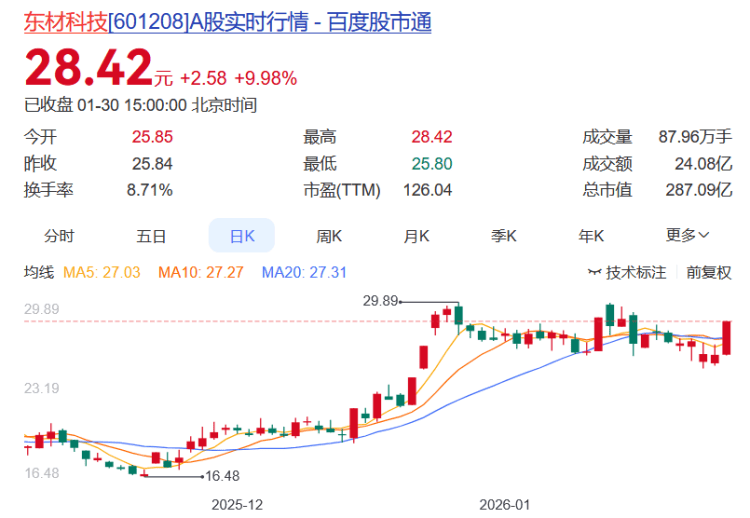 茂业商业、东材科技1月30日涨停