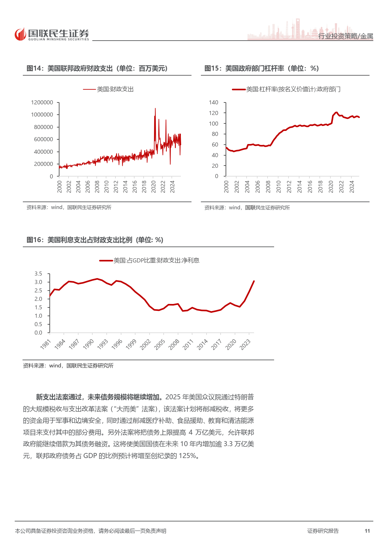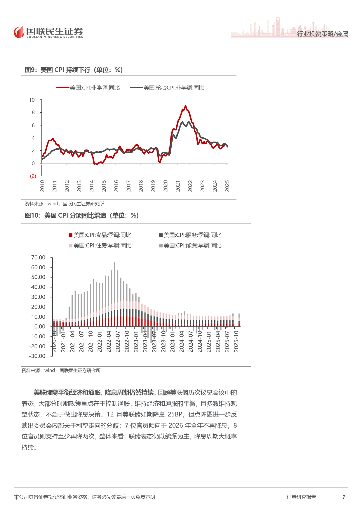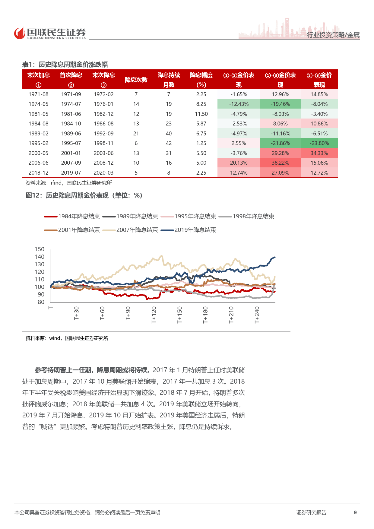 美国经济下行压力凸显,需求动能减弱,消费与投资信心指数下滑,失业率攀升至 2021 年 9 月以来新高,PMI 持续低于荣枯线。高利率加剧财政与债务压力,美联储降息周期加速开启,历史数据显示降息后金价大概率大幅上涨,为金价提供强劲支撑。