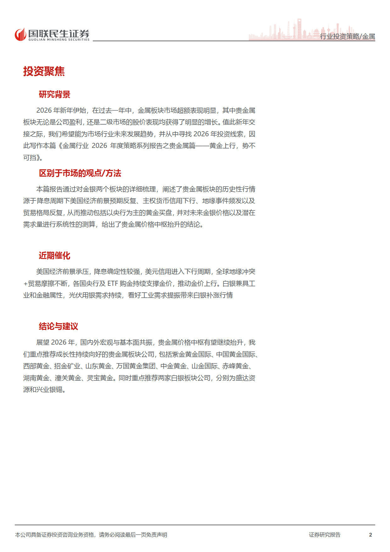 2026 年贵金属板块迎来多重利好共振,黄金上行趋势明确,白银补涨潜力凸显,板块投资价值显著。