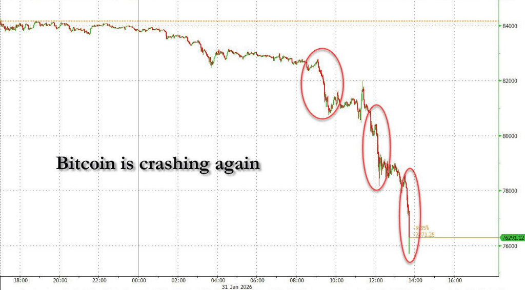 加密货币市场在周末遭遇新一轮抛售,比特币跌破8万美元关口至去年4月以来最低水平,延续了持续一个月的下跌走势。这场始于特朗普提名沃什出任美联储主席的抛售潮,不仅重创加密货币,也逆转了黄金白银的涨势,市场对美元贬值的押注正在瓦解。
