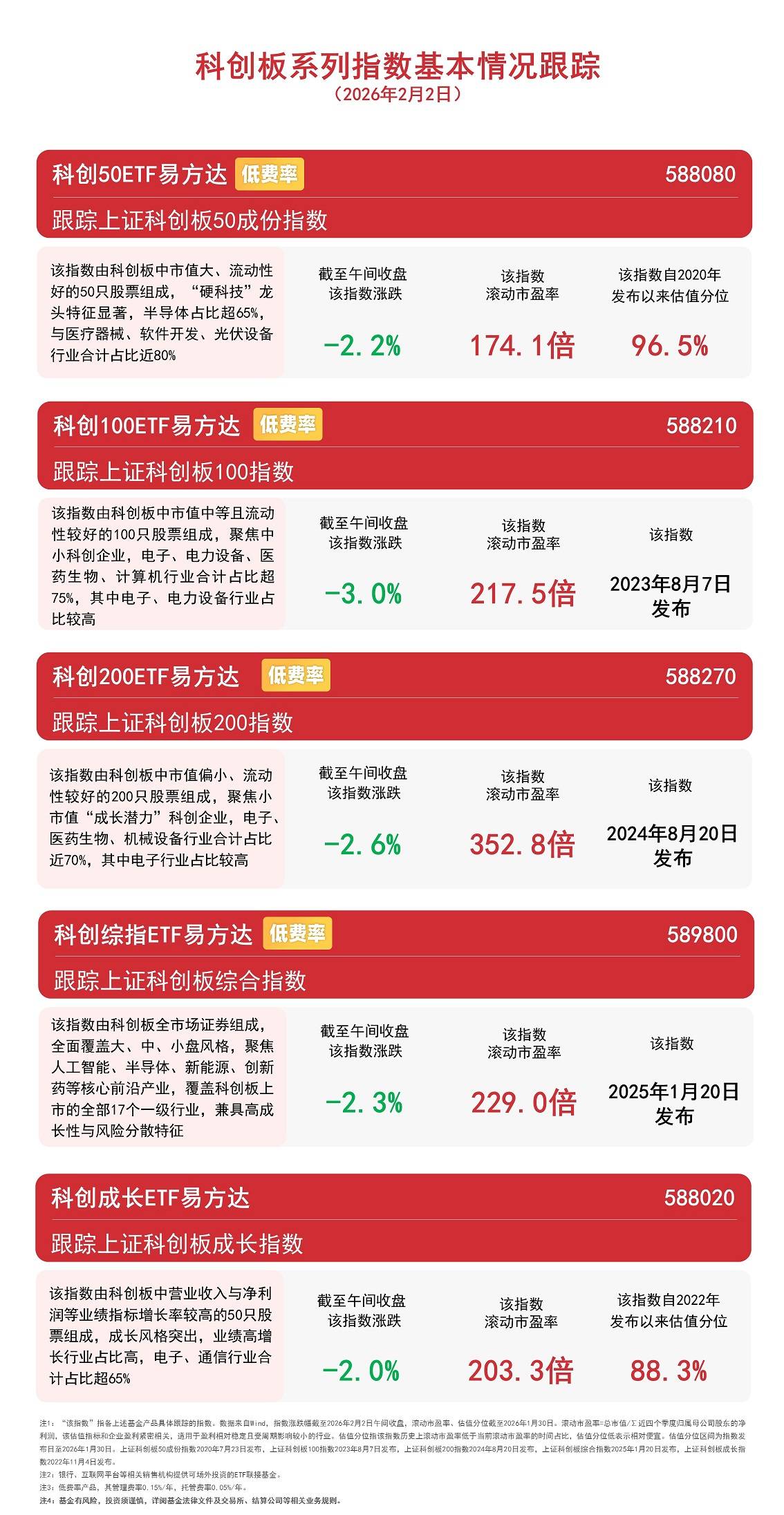 截至午间收盘,科创成长指数下跌2.0%,科创50指数下跌2.2%,科创综指下跌2.3%,科创200指数下跌2.6%,科创100指数下跌3.0%。Wind数据显示,科创50ETF易方达(588080)上周获超3亿元资金净流入。