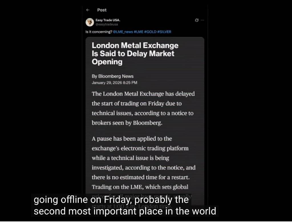 路透社发布了一份报告,声称美国正在终止对战略金属的支持。现在,能源部说政府说这是假的,且故意误导的(针对战略金属)。政府说这是故意误导。你为什么要故意误导,除非你损害了某些对结果有利害关系的人?但算法交易系统已经触发,大量的卖单已经在冲击CME,然后是保证金的发现,你知道,所有这些事。所以,在所有这些混乱发生的情况下,寻找他们用来强制清算的机制,实际的工具。