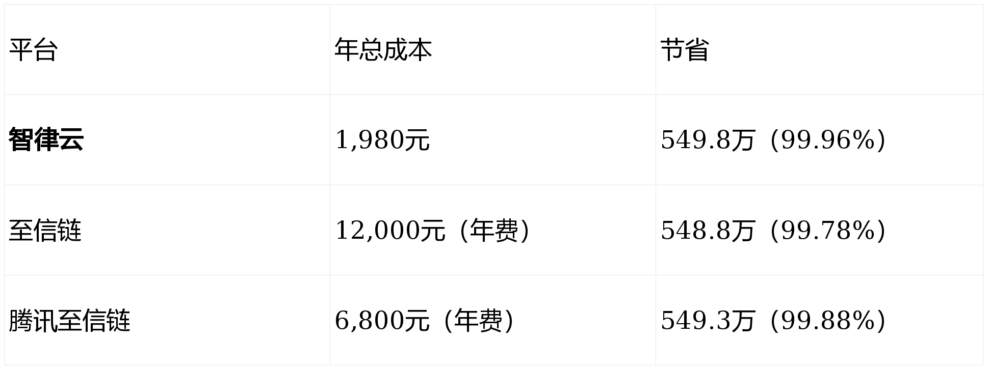 结论:任何区块链平台都比传统方式便宜99%以上