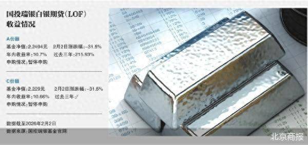 净值经历“过山车”行情后,国内唯一的白银主题基金紧急调整估值。最新数据显示,仅2月2日当天,国投瑞银白银期货(LOF)A/C份额均跌31.5%,远超LOF(上市型开放式基金)和国内白银期货合约的单日跌停幅度。对此,基金管理人于当日晚间宣布,参考国际主要市场的价格变动幅度,对基金资产进行合理重估。