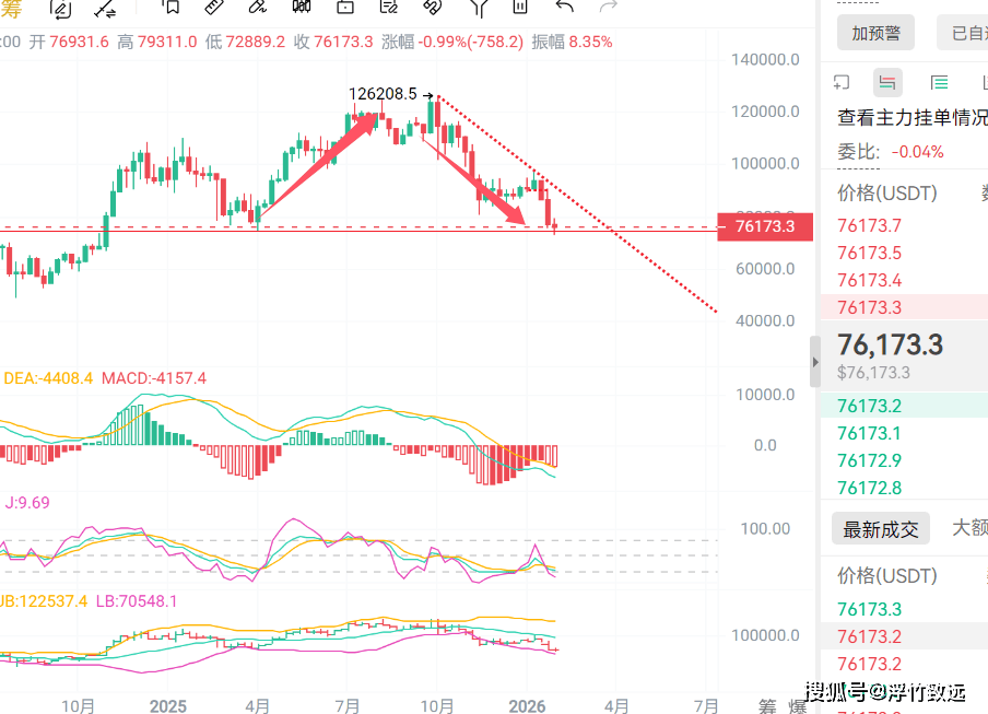 目前价格还是在周线级别支撑位徘徊,若跌破比特币可能下探到60000-68000美元区间筑底。短期内,若巩固在75000美元上方,可能反弹至82000-85000美元。