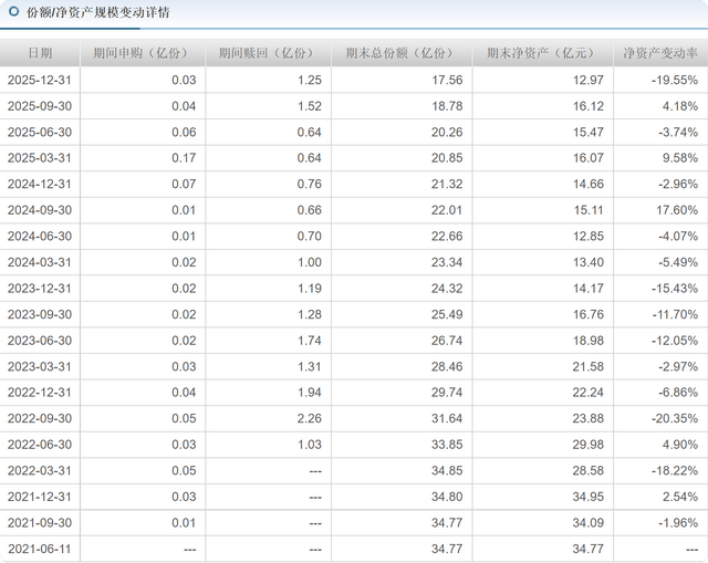 基金业绩下降,基金规模也会出现下降。特别是在净值连续回撤时易出现集中赎回。据天天基金网显示,交银成长动力一年持有混合A基金成立之初募集了34.77亿元,但成立后不久,基金份额被持续赎回。截至2025年12月31日,交银成长动力一年持有混合A,期末净资产12.97亿元,比上期减少19.55%。