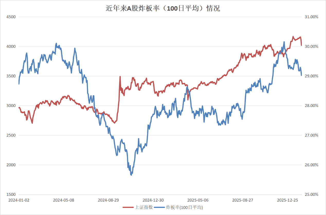 图:近年来A股炸板率(100日平均)情况数据来源:选股宝、界面新闻整理