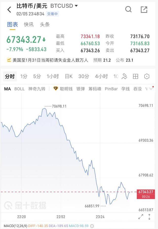 比特币跌破7万美元关口,来到了6.7万美元。德意志银行分析师Marion Laboure表示:“我们认为这种持续性的抛售表明,传统投资者正在失去兴趣,整体上对加密货币的悲观情绪在加深。”也有分析称,是投资者对比特币作为价值储存手段、通胀对冲工具和数字货币的效用信心减弱所致。
