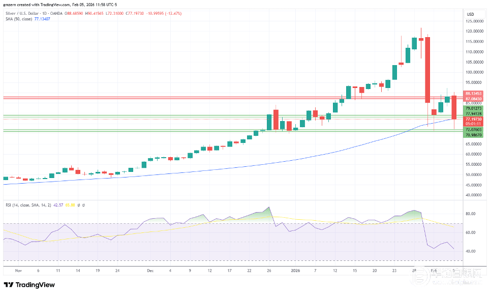 若银价跌破75.00美元,则将会向下一支撑位71.00美元至72.00美元移动。