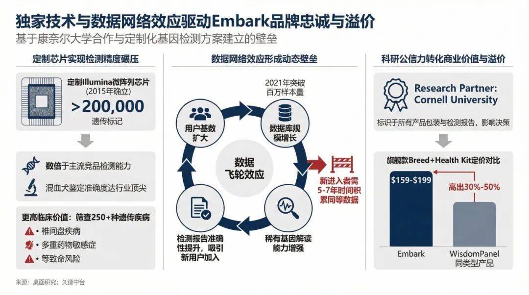 Embark没有使用通用芯片,而是采用了定制的Illumina微阵列芯片,这让它能检测超过20万个遗传标记。这种技术上的过度配置直接碾压了对手,形成了绝对的精准度壁垒。相比之下,拥有玛氏集团背景的WisdomPanel只有10万个检测位点。这种数据精度的代差,直接导致了用户在使用了竞品后,又转头购买Embark进行复检。