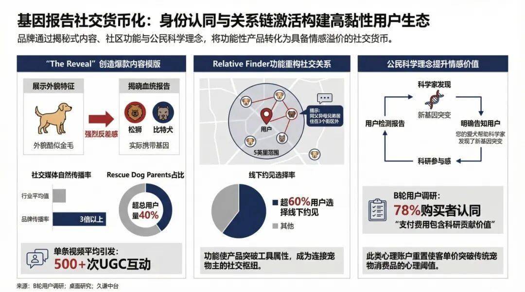 为了升华消费动机,Embark引入了公民科学的概念。每一份报告都会强调:您的爱犬帮助科学家发现了新的基因突变。这种参与感将消费变成了资助科学,极大地降低了用户对199美元高价的敏感度。