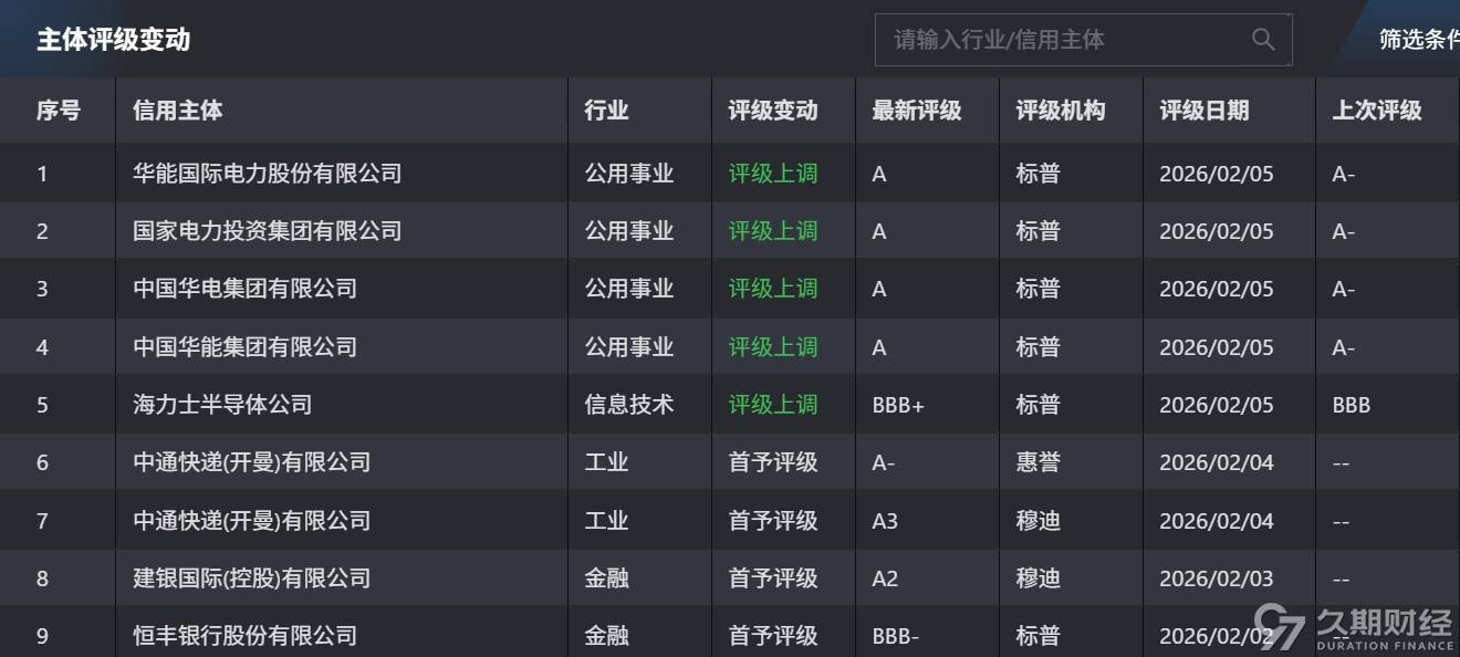 公司公告及新闻方面,路劲(01098.HK)发布公告,针对全资附属公司新选的清盘申请聆讯延期至2026年2月16日,并发布关于递延支付ROADKG 7.95 PERP分配款项的公告;中骏集团控股(01966.HK)预计2026年2月票据的本金连同应计未付利息于到期日时将仍然未能偿还及将不会结清;美团-W(03690.HK)拟收购Dingdong Fresh Holding Limited全部已发行股份;普洛斯中国发布公告,对GLPCHI 2.95 03/29/26发起现金购买要约;深圳市龙光控股已实施完成资产抵债相关安排,“H龙债03”等6只债券复牌;花样年集团(中国)已完成“20花样02”等5只债券现金提前偿付,债券复牌。