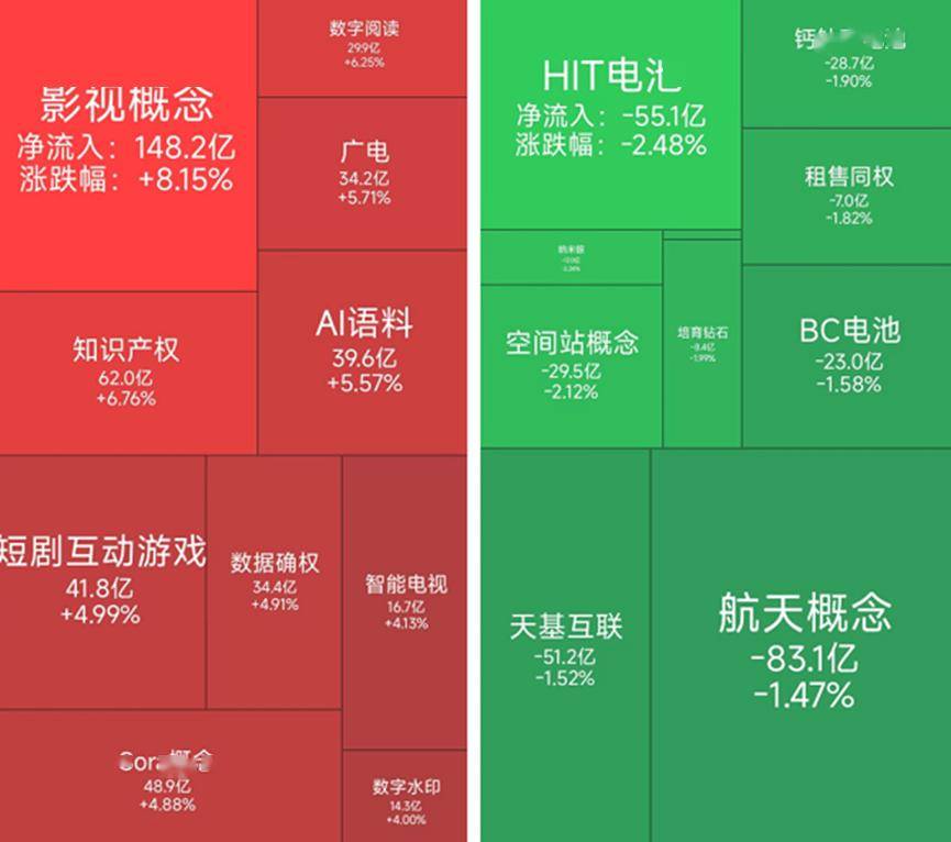 2月10日,A股三大指数窄幅震荡。截至收盘,沪指涨0.13%报4128.37点,深成指涨0.02%报14210.63点,创业板指跌0.37%报3320.54点。从板块行情上来看,今日影视概念掀涨停潮、其次表现较好的有AI语料和短剧互动游戏,而钙钛矿电池、航天概念和HIT电池等板块下跌。