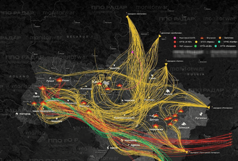 俄罗斯空天军图-95MS战略轰炸机、图-160战略轰炸机发射了4枚Kh-101巡航导弹轰炸了“赫拉比夫”330千伏变电站;俄罗斯陆军发射了2枚陆基锆石高超音速巡航导弹,轰炸了乌克兰文尼察州“文尼茨卡”750千伏变电站;· 罗夫诺州杜布诺和科里斯特地区,遭到了俄罗斯空天军图-95MS战略轰炸机、图-160战略轰炸机发射了4枚Kh-101巡航导弹轰炸。同时,俄军发射了伊朗小摩托,沙赫德-136自杀式无人机数量大约为300架。可以说,随着乌克兰基辅市地区,乌克兰东部地区,乌克兰中部地区的电力、能源设施被俄军炸崩溃后,俄军开始收拾乌克兰西部的电力系统。