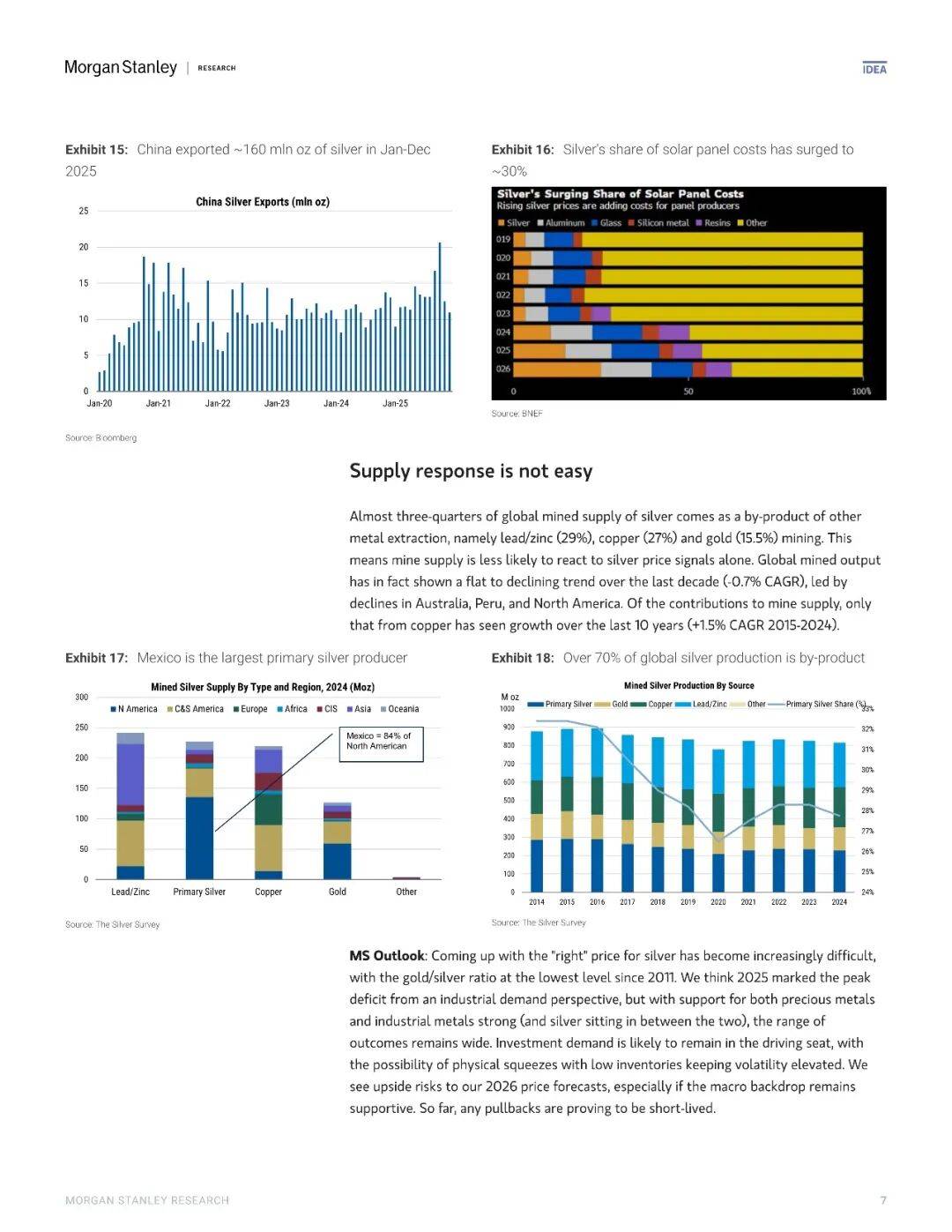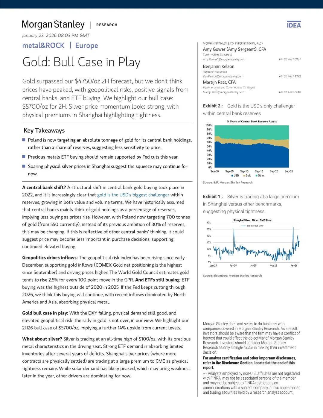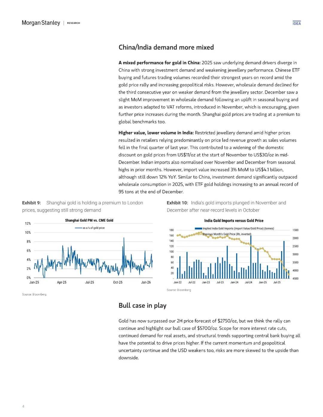 综合上述多重力量,摩根士丹利认为本轮金价的上涨远未结束。黄金不仅已突破此前设定的2750美元/盎司的下半年目标,其2026年基准预测已上修至4600美元/盎司,而在地缘冲突持续、美元走弱、央行加速去美元化的牛市情景下,价格有望上探5700美元/盎司,隐含较当前水平仍有14%的上涨空间。这一乐观预期的关键在于,市场正在面对一个对价格不敏感的持续性买盘——无论是央行基于绝对吨位的战略储备,还是机构在低利率环境下的配置需求,都不太可能因为价格的上涨而退缩。与此同时,矿山成本曲线显示90分位成本仅约2500美元/盎司,当前价格虽远高于边际成本,却未能刺激出显著的供应增量,这种供需缺口的持续性意味着价格上行风险远大于下行风险。若地缘政治不确定性进一步发酵且美元同步走软,金价突破5700美元/盎司的牛市情景概率正在显著增加。