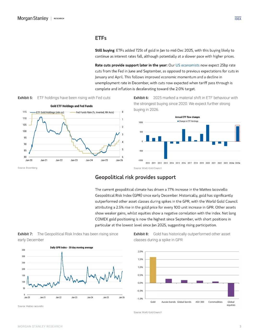 如果说央行和机构的买盘提供了长期支撑,那么地缘政治风险的重新发酵则为金价注入了即时性的上行动力。自2025年12月初以来,衡量全球地缘冲突强度的Matteo Iacoviello指数已飙升77%,而历史回测表明,该指数每上升100点,黄金价格平均上涨2.5%,且显著跑赢全球股市等传统风险资产。当前COMEX黄金净多头持仓已创2024年9月以来新高,空头头寸则降至年内最低水平,这种极端的市场头寸结构反映出投机资金对地缘溢价的定价意愿已达到空前水平。更重要的是,黄金在此轮风险事件中的表现揭示其功能已悄然演变——它不再仅仅是通胀对冲工具,而是成为了应对地缘政治黑天鹅事件的核心尾部风险保护手段,这种认知的深化意味着即便在价格高位,避险需求的韧性仍可能超预期。