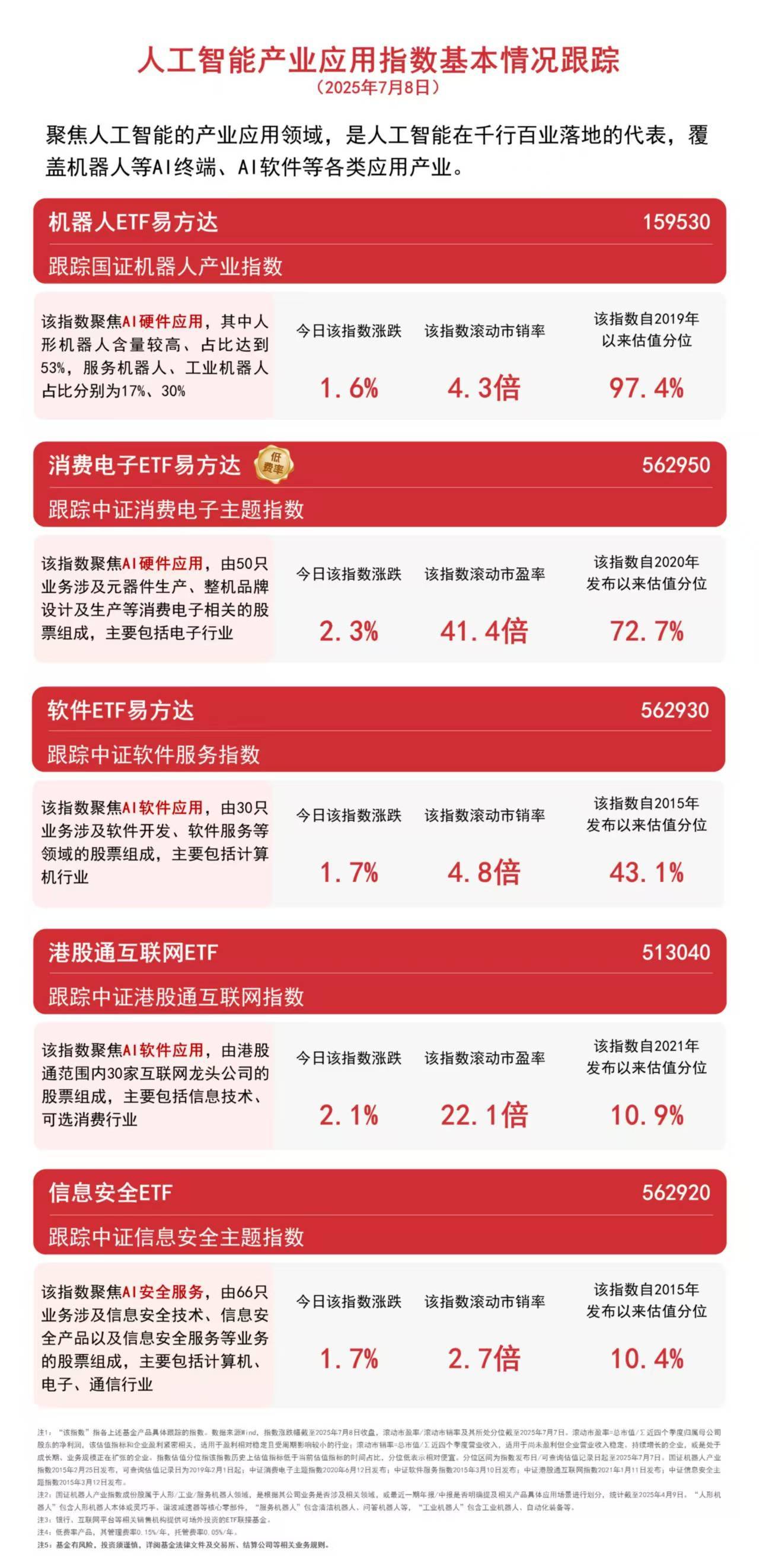 截至收盘,中证消费电子主题指数上涨2.3%,中证港股通互联网指数上涨2.1%,中证软件服务指数上涨1.7%,中证信息安全主题指数上涨1.7%,国证机器人产业指数上涨1.6%。